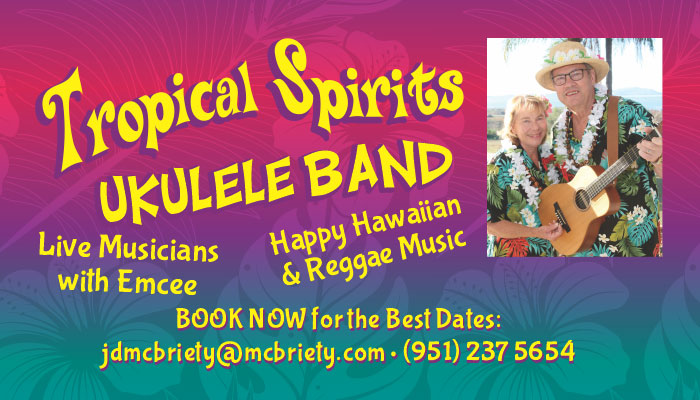 Dress up in your most colorful Hawaiian garb and enjoy a return performance by Hawaiian Hearts Band. You will hear Ukuleles and Guitars playing some fun and happy popular tunes.
