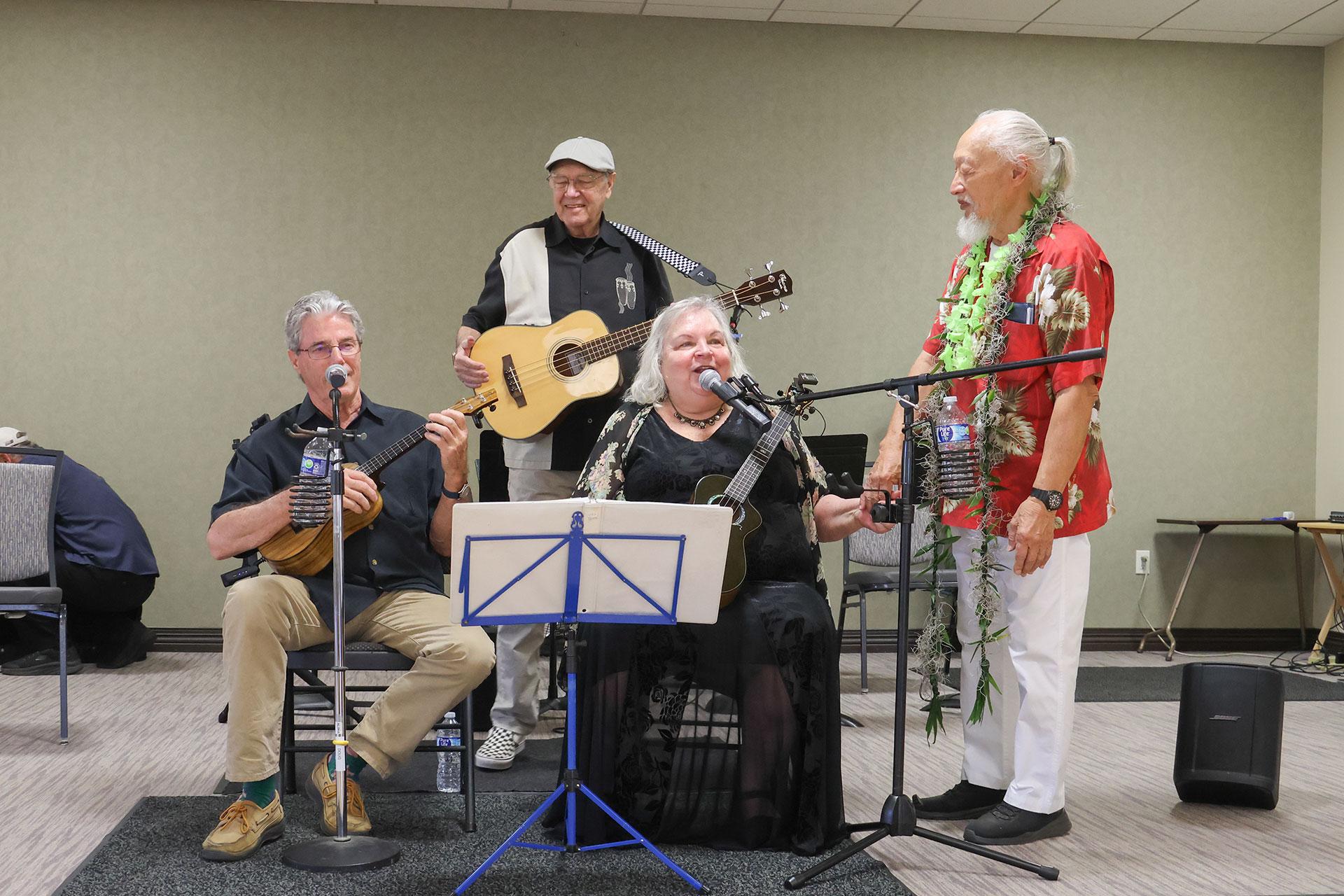 Dress up in your most colorful Hawaiian garb and enjoy a return performance by Hawaiian Hearts Band. You will hear Ukuleles and Guitars playing some fun and happy popular tunes.